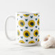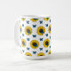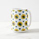A drawing of a cartoon sunflower and a blue butterfly. This yellow floral design is a gift idea for summer lovers, flower and nature lovers, and autumn lovers.