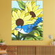 Bird art in an illustrative style of blue jay perched among sunflowers