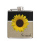 Sunflower and burlap printed design flash. Personalise with a name and or a date. Printed design, No real sunflower or burlap is attached.