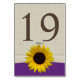 Sunflower and Burlap Purple Table Number Card