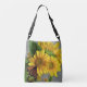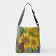 Bright yellow sunflowers and a monarch butterfly make a lovely image for this practical cross-body tote bag
