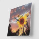 SUNFLOWER AND PINK SUMMER SUNSET WITH PINK CLOUDS SQUARE WALL CLOCK