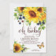 Sunflower Baby Shower Invitation - Elegant Boho Sunflower Rustic Baby Shower Invitation - Beautiful boho-inspired invitation featuring rustic watercolor sunflowers, boysenberries, butterfly and lush green leaves complemented with elegant earthy brown text. Personalise with your own wording/details! If you want to change the font style, colour or text placement, simply click the "Customise Further" button.