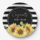 Sunflower Black and White Stripes Wedding Shower Paper Plate