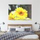 Yellow and colourful large sunflower blooming canvas print. Stylish home wall print decorator.