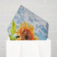 Yellow sunflower, blue sky, white clouds fine art craft decoupage tissue paper. Rustic country flower with lush green leaves. Pretty bright happy digitally painted summer nature photo. Trendy, chic, modern. Look for more matching items in my store collection. Image copyright Marg Seregelyi Photography.