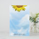 Sunflower and blue sky lined writing paper. Personalise with a business name and address at the bottom of this custom stationery. A single, big yellow sunflower at the top, with lines (or remove them) over an image of blue sky and clouds on the backgound. All elements, images and text can be removed as you prefer.