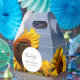 This design features sunflowers and a blue sky background. The simple white circle frames with its elegant typography is placed on top of the the rustic sunflower fields photo to create a stunning design. The yellow and blue tones of the sky and sunflowers create a natural country garden feel. Elegant wedding favour box design with modern elements. Matching wedding invitations and other stationery items are also available.