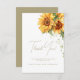 Sunflowers watercolor bouquet with sage greenery foliage rustic elegant chic spring summer fall garden bridal shower thank you card with whimsical trendy modern faux gold calligraphy script.