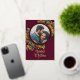 Design features golden sunflowers against a burgundy background and shimmery gold foil accents. The back features a sleek modern wedding invitation. Personalise with your photo.