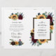 Bi fold design -- fold them in half. Design features elegant watercolor roses, peonies, wildflowers and sunflowers in various shades of burgundy red, navy blue and more over a wreath of eucalyptus greenery. Design also features a barn wood frame underneath the wreath. A unique font layout compliments the overall design.