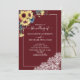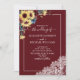 Sunflower Burgundy Navy Blue Script Photo Wedding Invitation