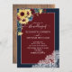 Sunflower Burgundy Navy Blue Wood Script Wedding Invitation
