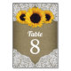 Sunflower Burlap Lace Wedding Table Number Cards