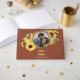 Featuring a sunflower theme with delicate gold foil accents and script fonts against a burnt orange background. Personalise with your favourite photo for an extra special unique keepsake for your wedding.
