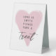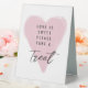 This pink heart "take a treat" tabletop sign design is perfect for any wedding theme. A stylish, timeless design that will complement your favour sweets table decor. Use it to guide your guests to the table where they can leave take your sweet gifts, ensuring that everyone get one.