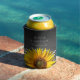 Fun sunflower chalkboard theme for this personalised can cooler wedding favour