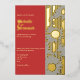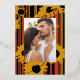 Announce your celebration with this bold modern coral, sunset and gold foil sunflower wedding invitation. This striking design features artistic sunflower silhouettes with luxe gold foil accents highlighting your names and wedding details, paired with integrated coral accents, striped patterns, and clean modern typography. The back showcases your favorite engagement or pre-wedding photo for a personal touch.