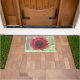 This doormat features a rusty red sunflower to cheerfully greet your guests! Copyright: Marjorie Tietjen