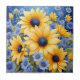 Sunflower Elegant With Soft Blue Wildflowers Tile