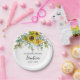 Beautiful, cheerful sunflowers, eucalyptus, and fern leaves create an elegant floral bouquet for your baptism plates. A rustic wooden cross at the top adds to the blessed occasion. The name, "Baptism", and date are also displayed on the plate. This paper plate is perfect for any late summer or autumn baptism.