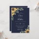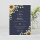 Sunflower Eucalyptus Botanical Navy Blue Wedding Invitation