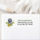 The left side of these return address labels feature a watercolor image of a black Chow Chow Dog among scattered sunflowers and eucalyptus leaves. Your custom text is in green and black at the right.