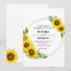 An elegant wedding invitation with a golden frame of cheerful sunflowers.