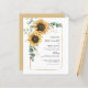 Create a modern Sunflower Floral Budget Wedding invitation card with this cute template featuring beautiful rustic floral bouquet, geometric gold effect frame, with modern simple typography.