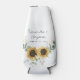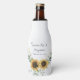 Create a modern Sunflower Floral favour Bottle Cooler with this cute template featuring beautiful rustic floral bouquet, with modern typography on white background. TIP: Matching wedding suite cards like RSVP, wedding programs, banners, tapestry, gift tags, signs, and other wedding keepsakes and goodies are available in the collection featuring this design.