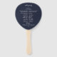 Beautiful watercolor sunflowers and eucalyptus arrangement, back features solid navy blue background, wedding program fans. Personalise text, customise font style, colour and size.