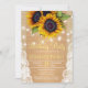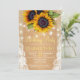 Rustic country birthday party stylish invitation template on a beige rust orange burlap background featuring big yellow gold sunflowers bouquets, strings of twinkle lights, white lace borders and a faux gold typography script. +++++++++++++++ Easy to personalise with your details! You can choose to customise it further changing fonts and colours of lettering. ++++++++++++ The invitation is suitable for outdoor garden / backyard rustic country anniversaries or celebration parties / barbecues.