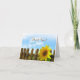 Sunflower thank you card with custom message inside. Say thank you to members of the bridal party, attendants or guests with sunny, country style cards. A yellow sunflower grows near a wooden fence with blue sky in the background.