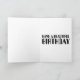 This card is great fun and good quality. I loved the humour inside and on the back. There is the opportunity to change the orientation of this card from landscape to portrait, which I did. It is relatively straightforward to amend the typeface to fit the new orientation. It was well packaged with no plastic. The printing on this card is excellent.