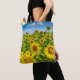 Sunflower field in summer sunny day. Picturesque landscape with blossoming sunflowers against sky. Beautiful natural background