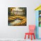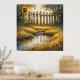 A tranquil countryside scene featuring sunflowers, a weathered wooden fence, and a winding stream bordered by golden grasses. Warm, sunlit tones create a peaceful, nostalgic mood for nature and rustic lifestyle themes.