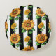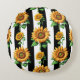 Sunflower Floral Black White Stripes Round Cushion