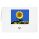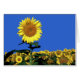 This charming floral postcard features an image of vibrant yellow sunflowers highlighted against a pretty blue sky background.