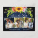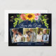Sunflower Floral Blue Wood 3 Photo Save The Date Postcard