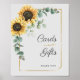 Our sunflower eucalyptus floral and geometric frame cards and gifts sign is perfect for a country barn wedding or bridal shower. The bohemian floral design features yellow sunflowers, gold foil geometric leaves and frame, and hunter green eucalyptus greenery in watercolor with an elegant modern rustic look.
