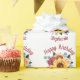This Happy Birthday wrapping paper features a watercolor sunflower and roses design with foliage and leaves. Personalize it with a name.