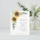 Create a modern Sunflower Floral Budget Wedding invitation card with this cute template featuring beautiful rustic floral bouquet, geometric gold effect frame, with modern simple typography.