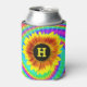 Sunflower Flower Power Tiedyed Retro Monogram Can Cooler