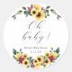 Seal your invitation envelopes or favours with these classic "oh baby!" stickers. Featuring "oh baby!", event name and date framed by a watercolor wreath of greenery, sunflower and roses. Coordinates with the Autumn Delight collection found in the Adore Paper Co. Zazzle Shop.