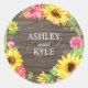 Sunflower Frame on Dark Wood Classic Round Sticker