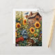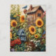 Sunflower Garden 3 Bird Houses Blue Birds Postcard