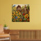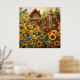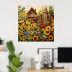 Sunflower Garden 4 Bird Houses Blue Birds Poster