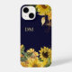 A bouquet of bright yellow and gold sunflowers combine with pale gold and green leaves to make a stunning bouquet on this phone case. The images are placed at the bottom and top right. Your name or monogram is in gold.