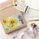 Original watercolor painting by Sandra Gale, featuring a group of sunflowers and a gardener's bag, hat and shovel. Great design for gardeners of all types and a perfect image of summer!