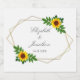 Design features sunflowers and botanical leaves over a printed gold coloured geometric frame.